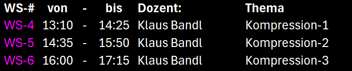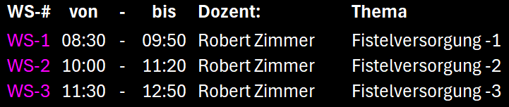 Für die Workshops in Saal 4 ist eine vorherige Anmeldung notwendig. Die Möglichkeit dazu erhalten Sie ca. 14 Tage vor dem Kongress zusammen mit der Auswahl Ihres Saals für das